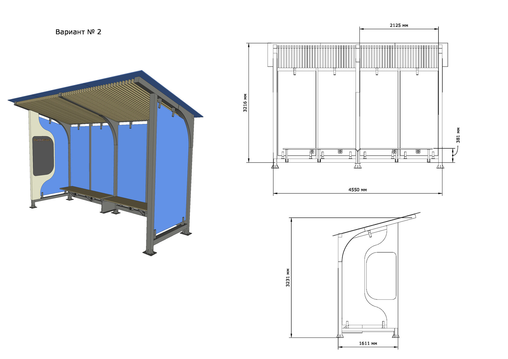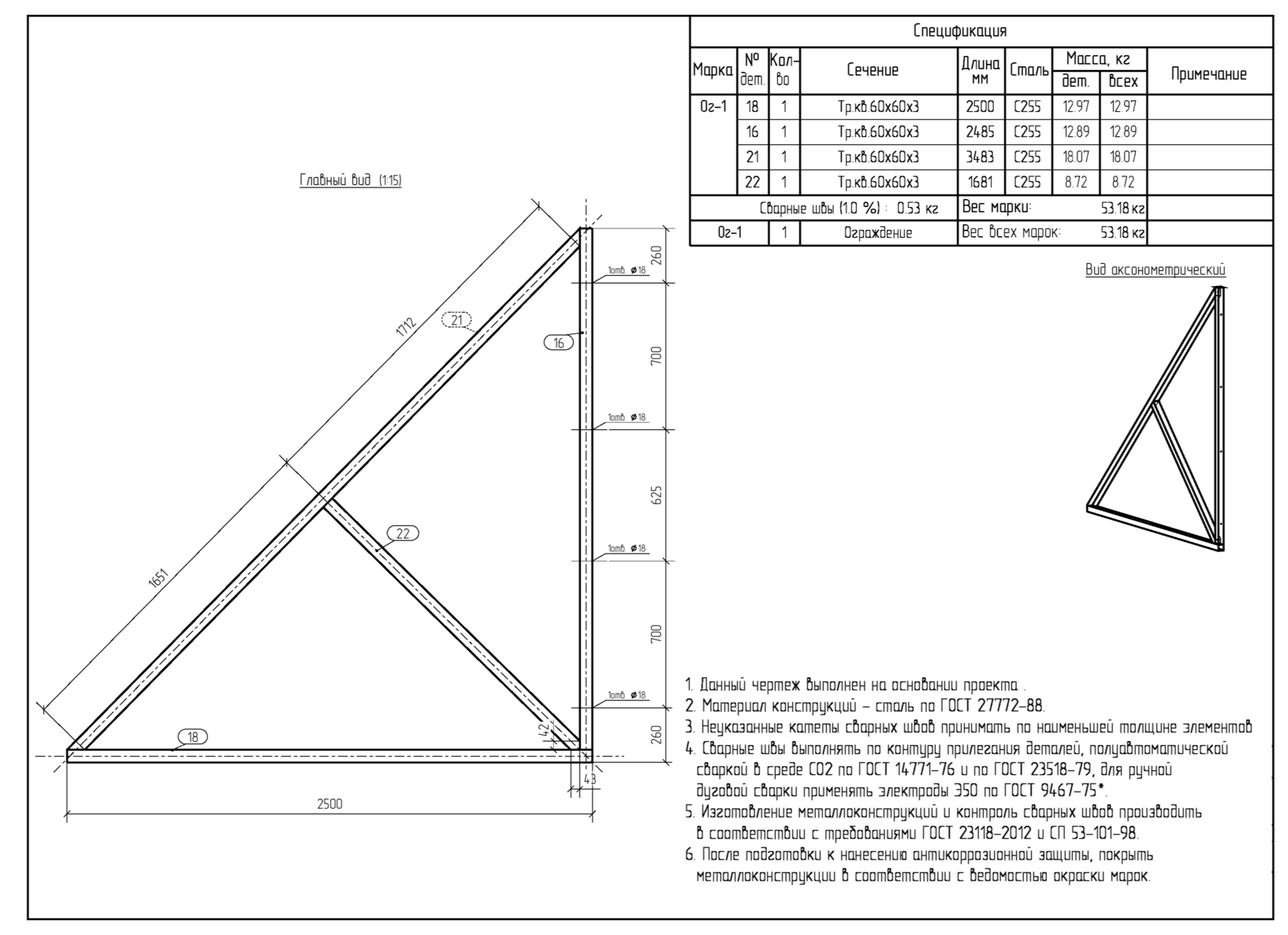 Две прямоугольные рамы и одну раму треугольной формы, каркасы между собой соединяются болтами.
