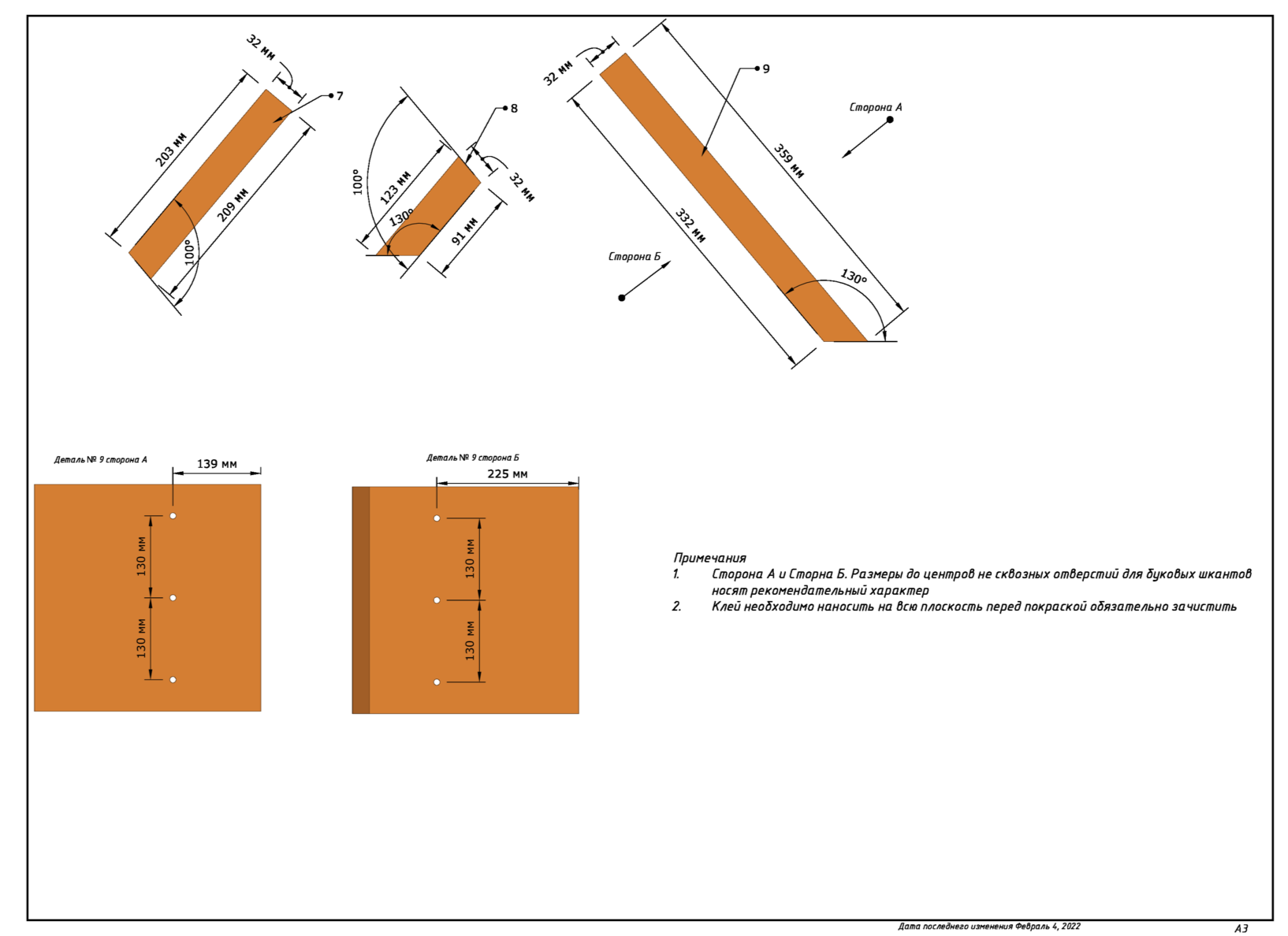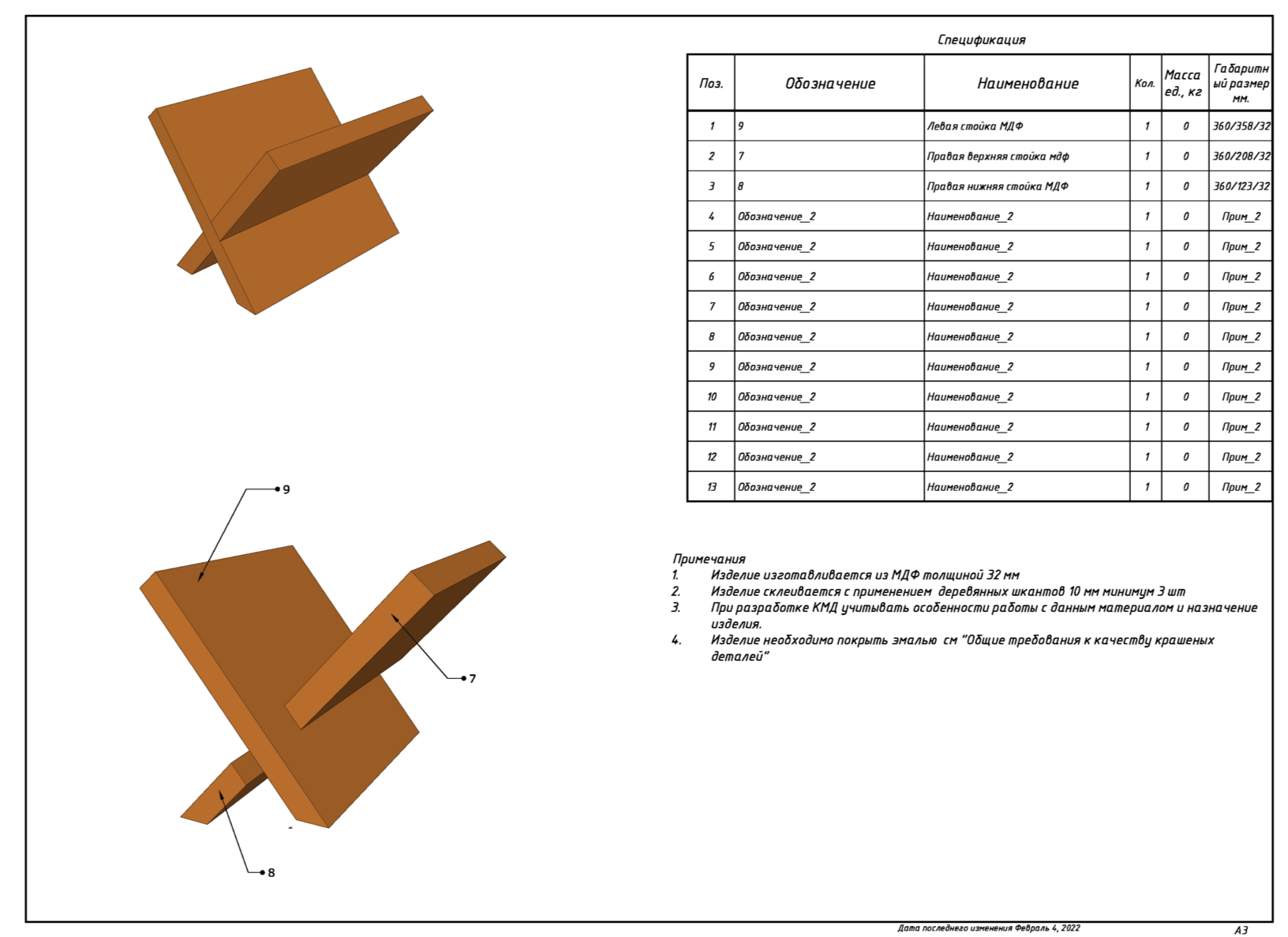 Изделие склеивается с применением деревянных шкантов 10 мм минимум 3 шт. При разработке КМД учитывать особенности работы с данным материалом и назначение изделия.