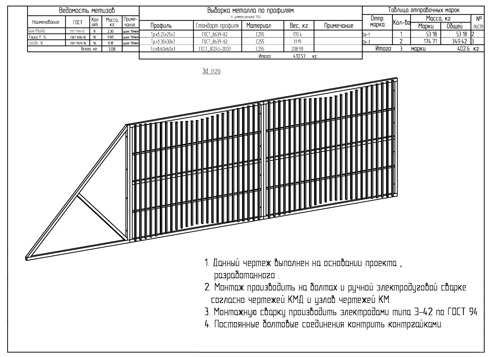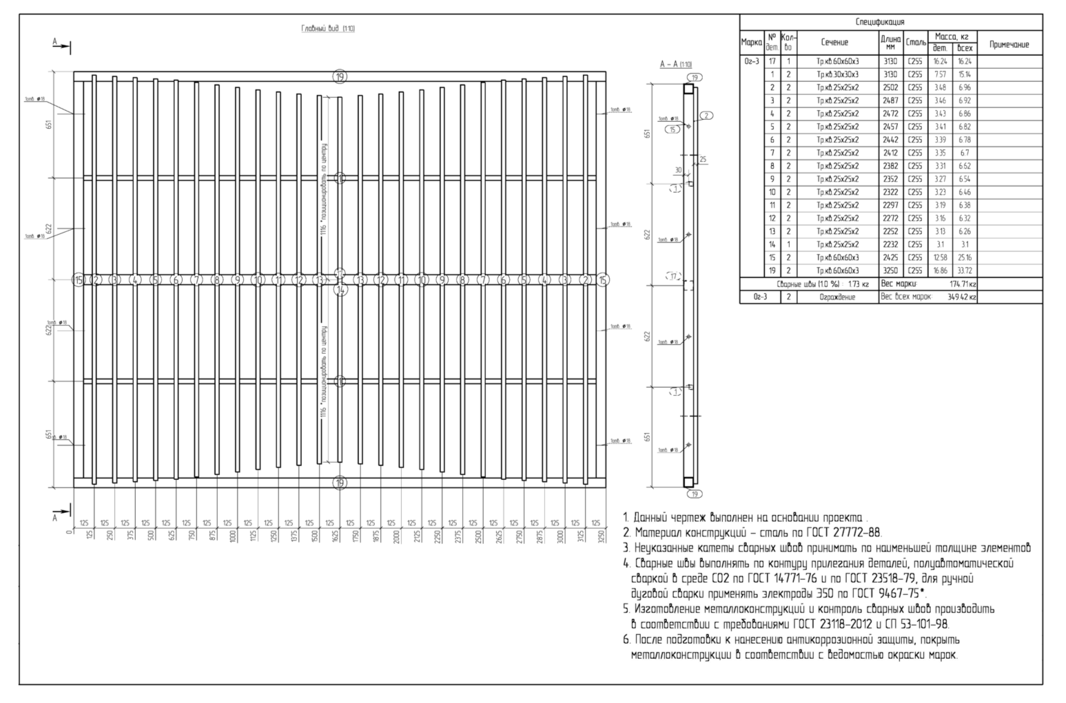 К прямоугольной части ворот по лицевой стороне вертикально приварены квадратные профиля сечением 25мм разной длинны от 2232 мм до 2502мм.